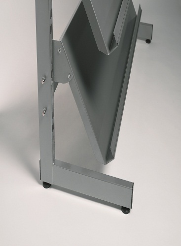 One single piece 1 mm thick first quality steel shelves. Both top and bottom label holders and book rim included. Held to the foot by metallic brackets.