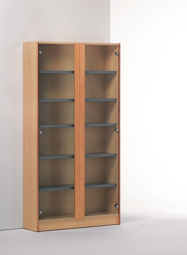 Costados fabricados en aglomerado de 23 mm de espesor, rechapados con hoja de haya de primera calidad con taladros para alojamiento de los portaestantes cada 32 mm, dos niveladores de nylon de 25 mm de diámetro y 15 mm de altura, frente canto redondo de madera maciza de 23 x 7 mm. Barnizado en su color con fondo poliuretano pulimentado, terminación en lacas semimates.