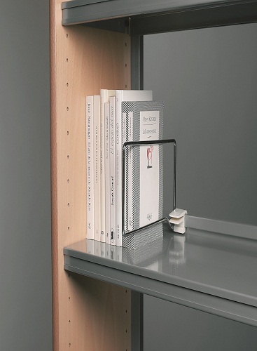 Estantes de una sola pieza en chapa de acero de primera calidad de 1 mm de espesor. Incorpora portaetiquetas y pestaña sujetalibros tanto por arriba como por abajo. Acabado en pintura epoxi.