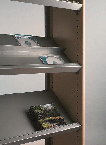Estantes de una sola pieza en chapa de acero de primera calidad de 1 mm de espesor, con ala en la parte inferior de 3 cm para alojar revistas o libros. Acabado en pintura epoxi.