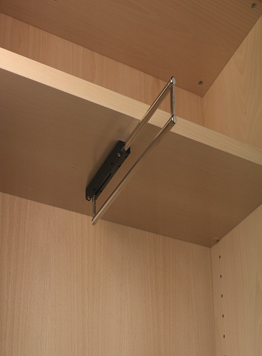 Estantes de 23 mm de espesor, rechapado con hoja de haya de primera calidad por amabas caras, sujetas al costado mediante anclaje «clock».