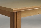 Tampo fabricado em aglomerado de faia de 23 mm de espessura, revestido a folha de faia de primeira qualidade, rebordos largos em madeira maciça de faia, de 23 x 7 mm.